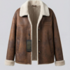 Женская укороченная куртка-бомбер из натуральной кожи темно-коричневого цвета с отделкой из меха. Модель в стиле авиатор с объемным меховым воротником, двумя накладными карманами с клапанами на груди и застежкой-молнией по центру с декоративными металлическими кольцами. Куртка имеет свободный крой, манжеты и низ изделия выполнены из темно-коричневого трикотажа в рубчик. Рукава украшены меховыми отворотами, создающими дополнительный акцент. Контрастная белая строчка подчеркивает все швы и детали куртки. Стильное сочетание гладкой кожи, пушистого меха и вязаной резинки создает современный городской образ. Идеальный выбор для прохладной погоды — эта куртка объединяет тепло, комфорт и модный дизайн в стиле милитари.