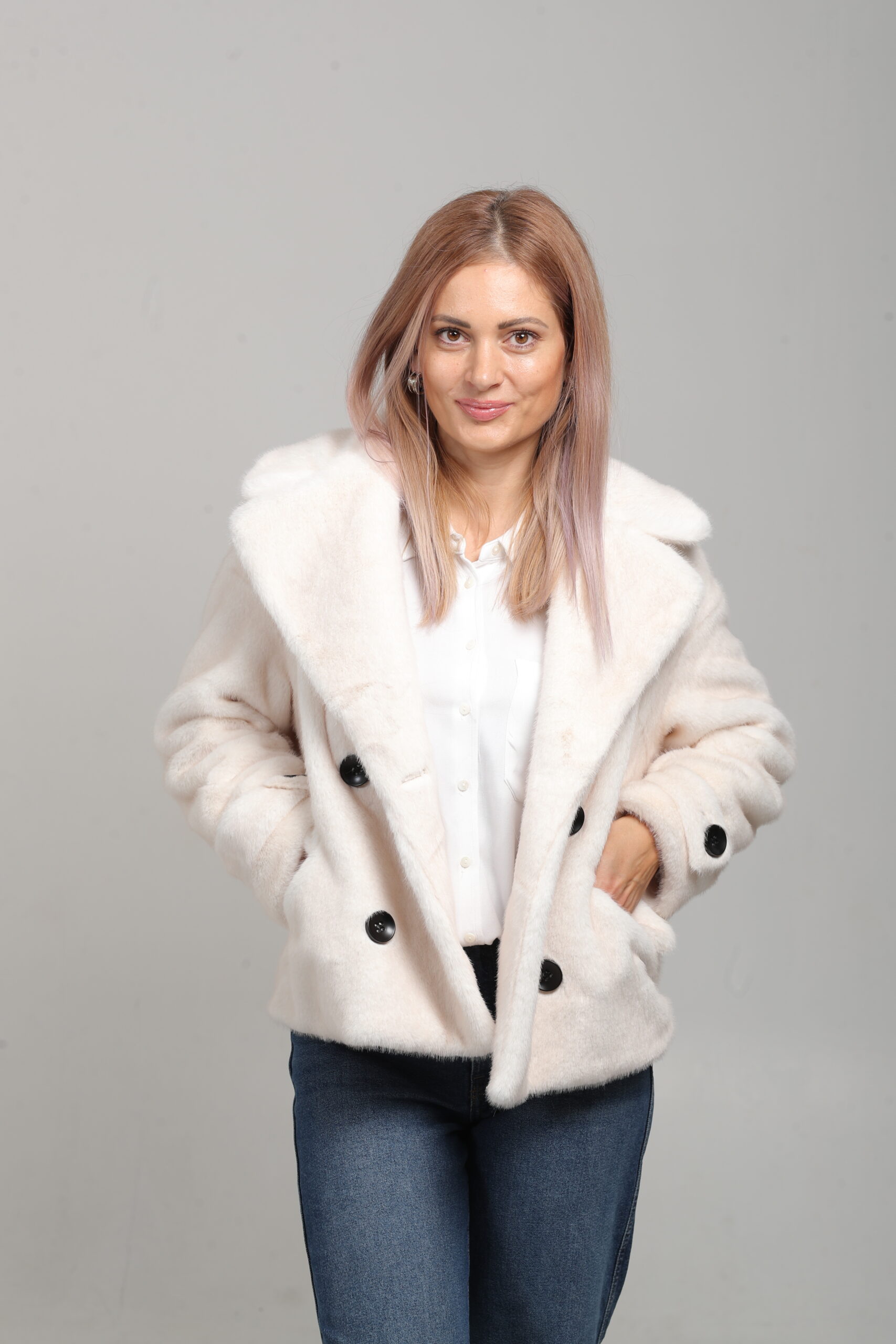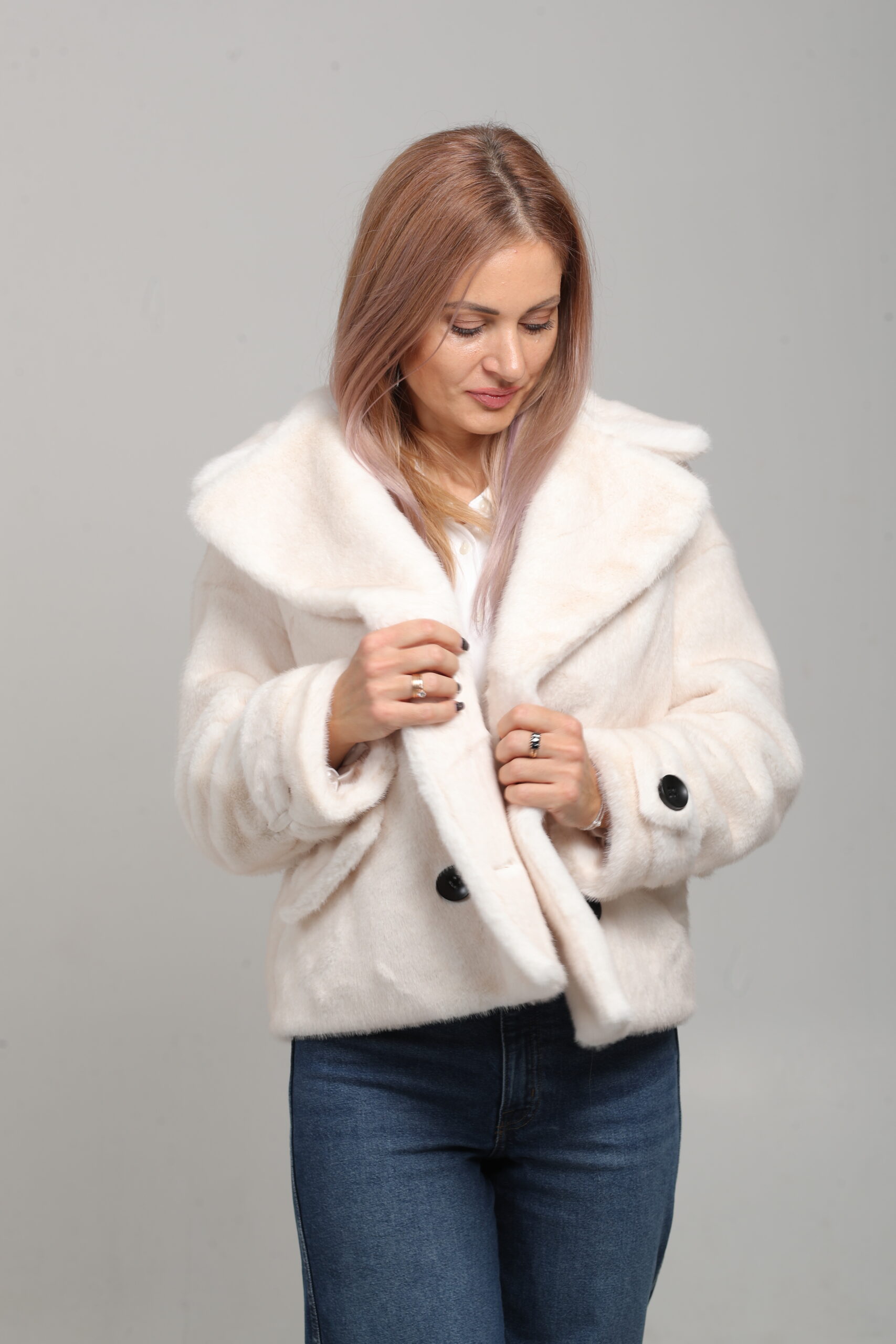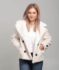 Роскошная меховая куртка-пиджак в изысканном молочно-белом оттенке из натурального меха норки. Модель выполнена в классическом двубортном стиле с элегантными черными пуговицами, создающими стильный контраст. Широкий отложной воротник и свободный силуэт придают образу элегантность и утонченность. Мягкая, шелковистая текстура меха обеспечивает непревзойденный комфорт и тепло. Укороченная длина идеально сочетается с джинсами и создает современный образ. Это воплощение роскоши и классического стиля, идеальный выбор для особых случаев и холодных зимних дней.