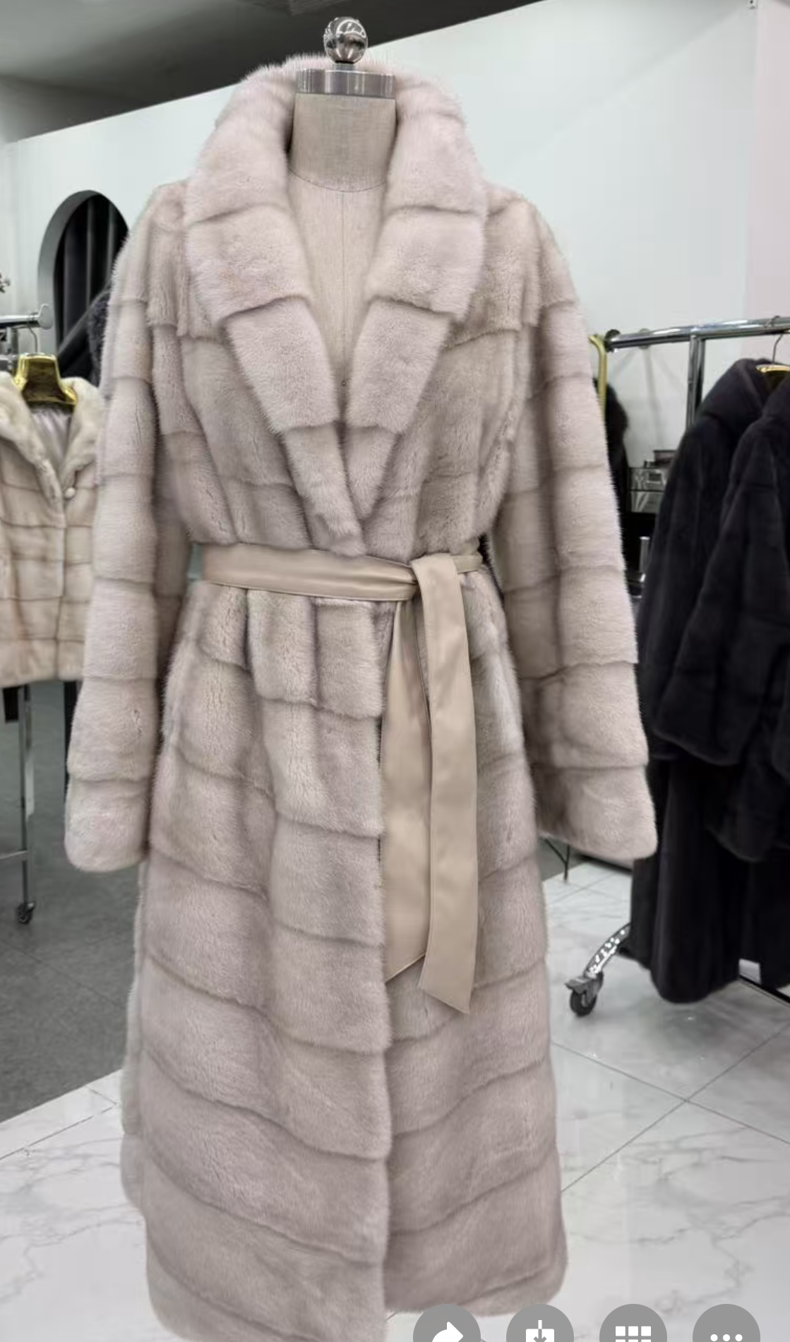 Светлая шуба в изысканном кремово-бежевом оттенке выглядит мягко, утончённо и очень элегантно.
