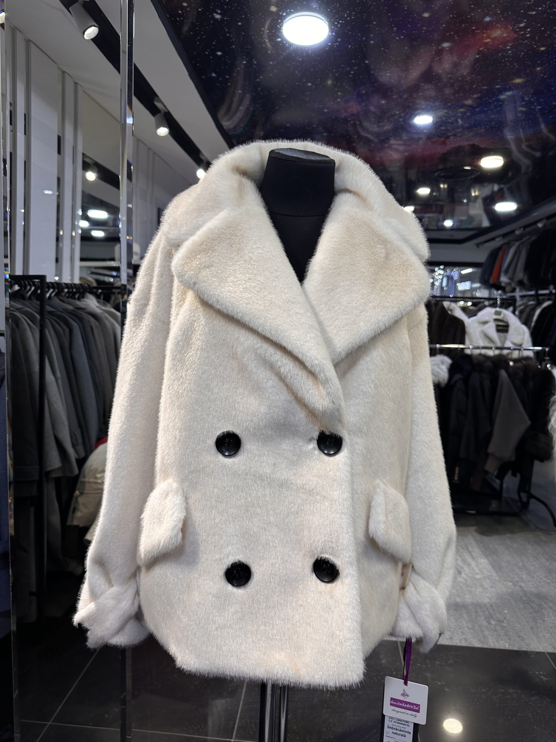 Укороченная длина делает шубу практичной для активной городской жизни.