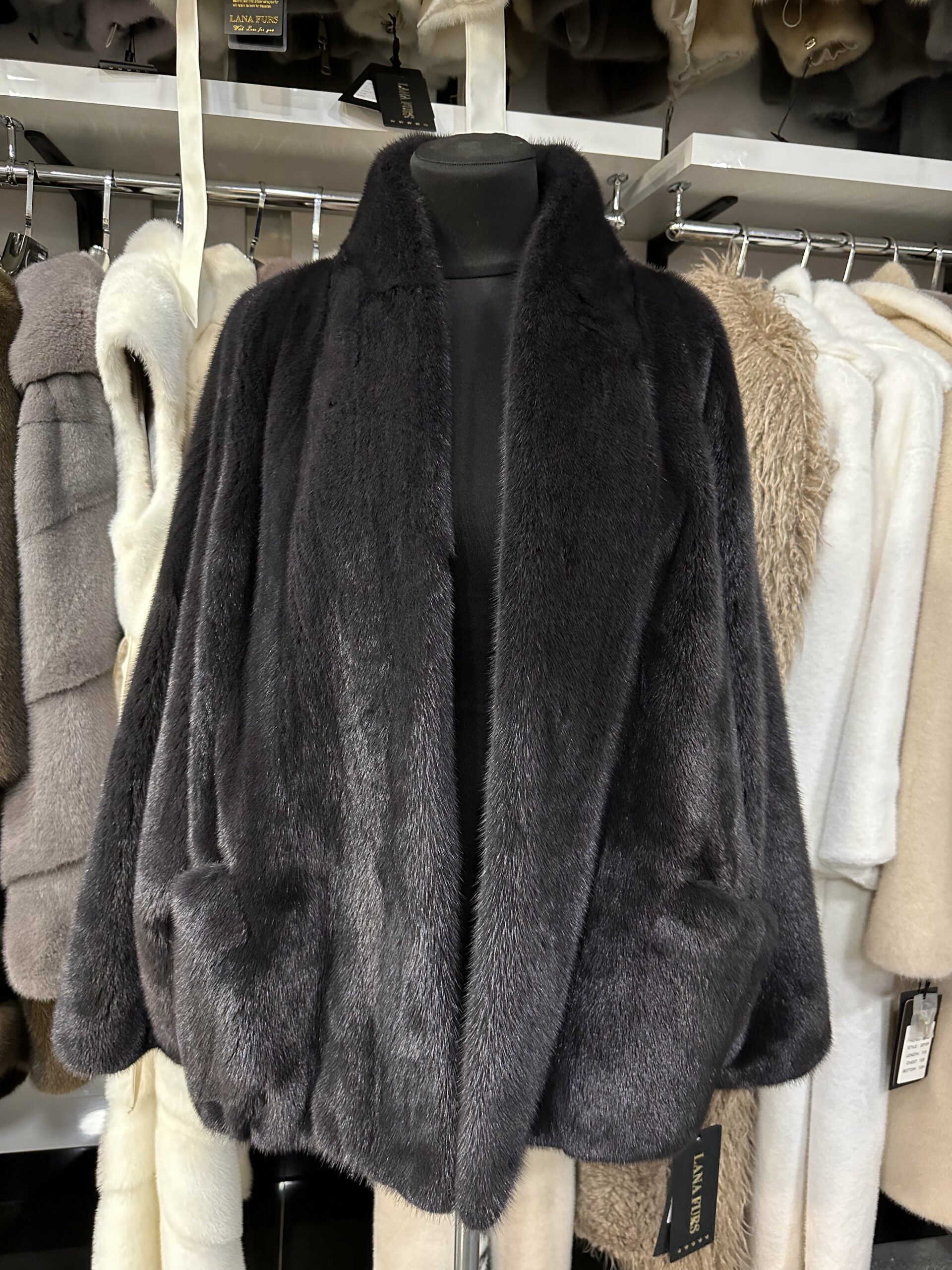 Укороченная шуба в насыщенном графитово-чёрном оттенке выглядит строго, элегантно и по-настоящему статусно.