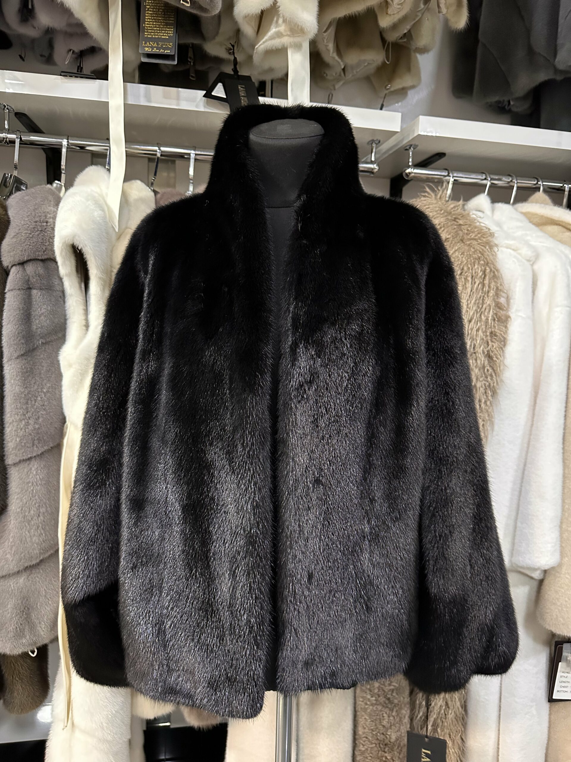 Эта шуба выполнена в насыщенном чёрном оттенке и выглядит максимально эффектно за счёт плотного, ровного меха с глубоким бархатным блеском. Поверхность меха однородная и гладкая, благодаря чему цвет смотрится особенно насыщенно и подчёркивает статусность модели. Классический прямой крой создаёт аккуратный, собранный силуэт, который не утяжеляет фигуру и остаётся комфортным в носке. Мягкий шалевый воротник плавно переходит в линию борта, красиво обрамляя шею и добавляя образу элегантности без лишних деталей. Длина модели универсальна — она идеально подходит как для повседневных городских образов, так и для более вечерних выходов. Шуба легко сочетается с платьями, костюмами, джинсами и обувью разного стиля, оставаясь актуальной из сезона в сезон. Это сдержанный, но выразительный вариант для тех, кто ценит классический дизайн, качество и ощущение уверенной роскоши.