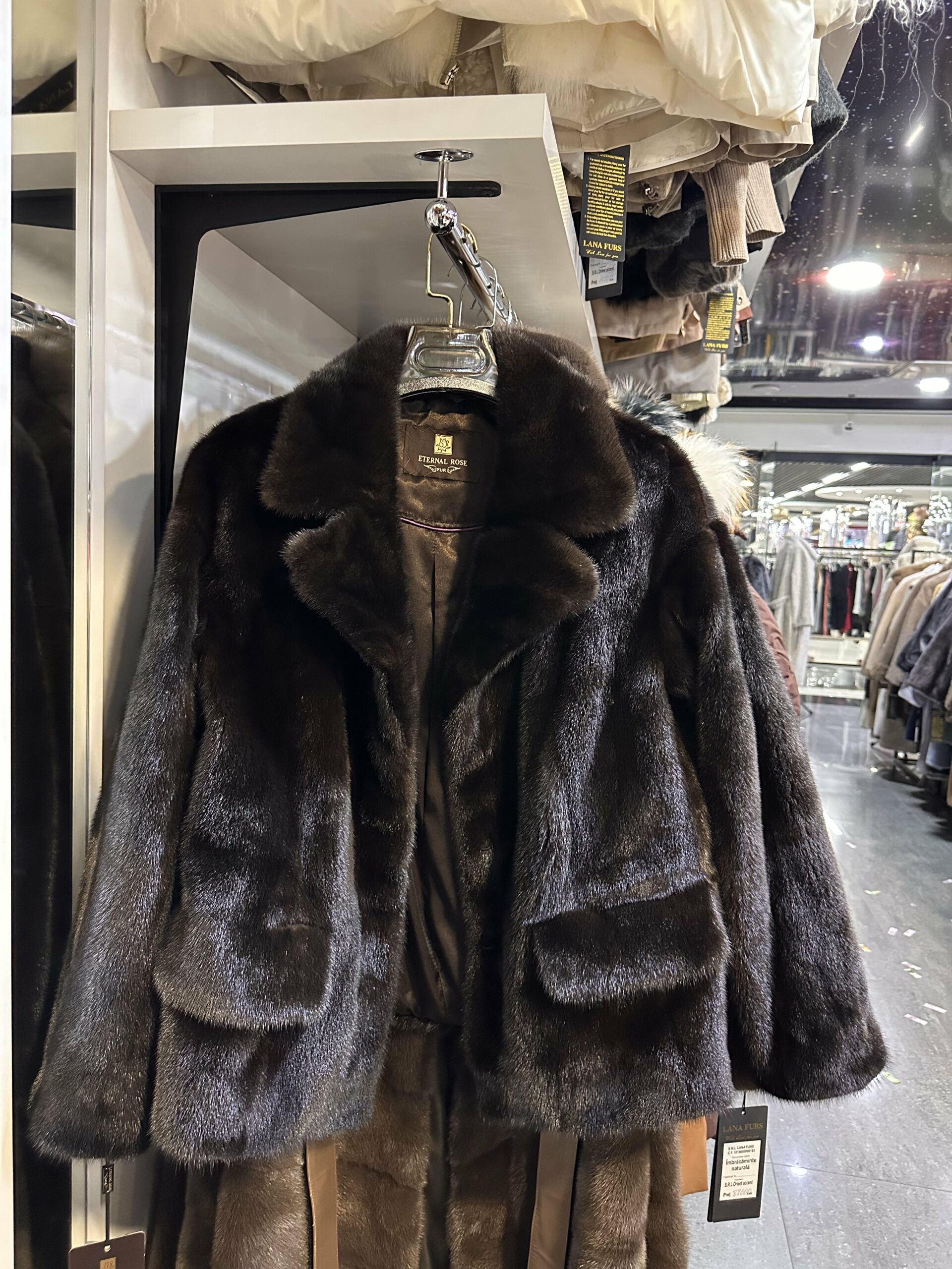 Эта укороченная шуба выполнена в насыщенном тёмно-коричневом оттенке с выразительным благородным блеском, который подчёркивает плотную и шелковистую структуру меха. Горизонтальная раскладка шкурок создаёт аккуратный ритм и визуальную глубину, придавая модели дорогой и ухоженный вид. Прямой, слегка свободный силуэт обеспечивает комфортную посадку и позволяет легко сочетать шубу как с классическими, так и с более повседневными образами. Объёмный английский воротник красиво формирует линию плеч и шеи, добавляя элегантности и статусности. Оптимальная длина до линии бедра делает модель универсальной и практичной для активной городской жизни. Эта шуба — удачное сочетание лаконичного дизайна, качественного меха и современной эстетики, рассчитанное на тех, кто ценит сдержанную роскошь и безупречный стиль.