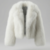 Cojoc femeiesc din piele întoarsă ecologică de culoare maro cu guler și căptușeală din blană artificială crem. Haina are o croială clasică ajustată cu guler răsfrânt, două buzunare laterale cu clapete și închidere cu nasturi. Manșetele și partea de jos sunt finisate cu blană, creând un bordaj contrastant. O haină elegantă de damă în stil aviator, perfectă pentru vremea rece.